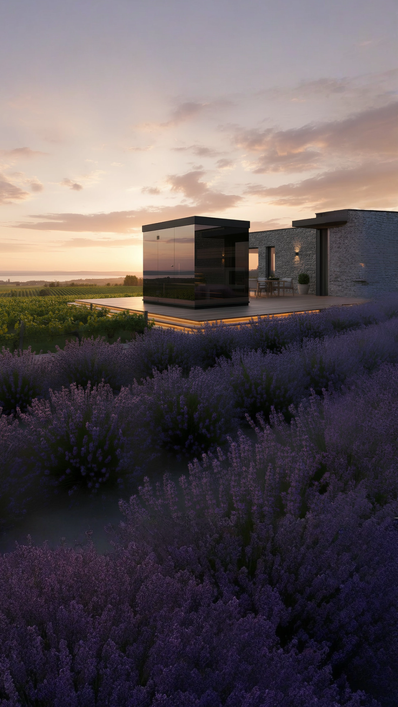 a környezetet visszatükröző üvegfalak elrejtik a belső teret, miközben odabent fény, meleg és természetes nyugalom vár.